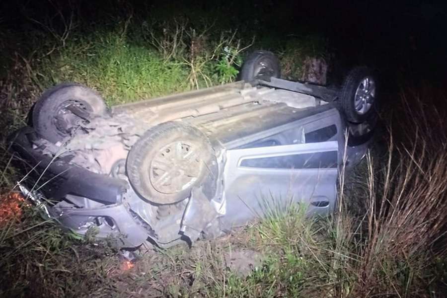 Um veículo capotou após colidir em um cavalo solto na pista, nesse sábado (10), em Imbé.