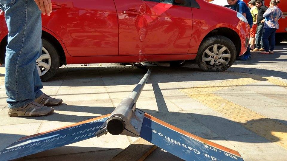Um veículo acabou invadindo a calçada após colisão com outro carro, por volta das 12h40min deste sábado, na esquina das ruas Júlio de Castilhos e Major João Marques, no centro de Osório.