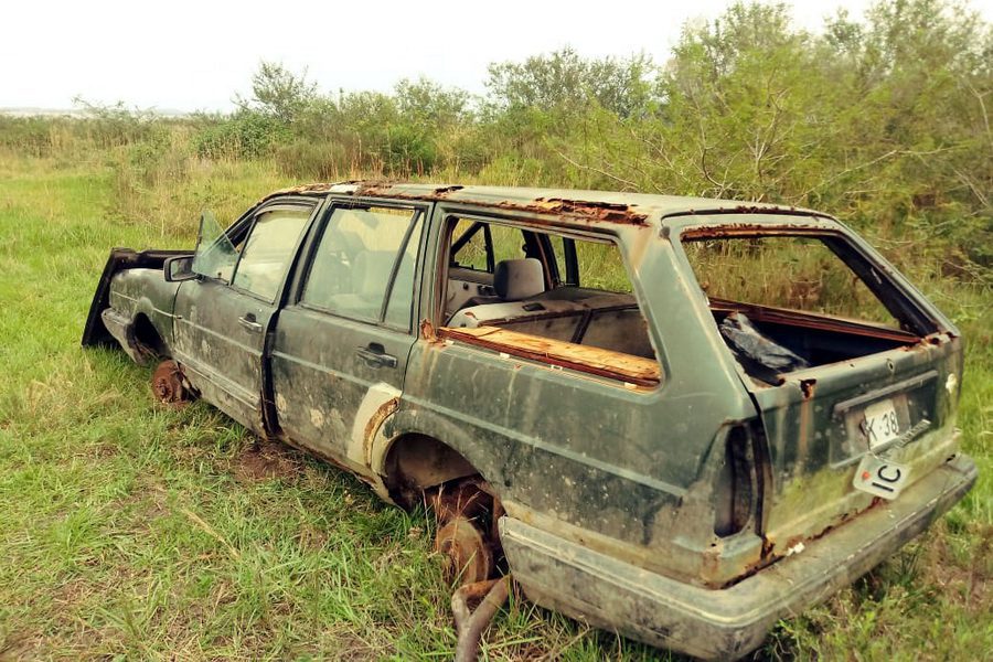 A Brigada Militar recebeu denúncia na tarde desta segunda-feira (27), que um veículo completamente depenado havia sido localizado, em uma propriedade particular, às margens RSC-101, próximo a Lagoa dos Barros, em Osório.