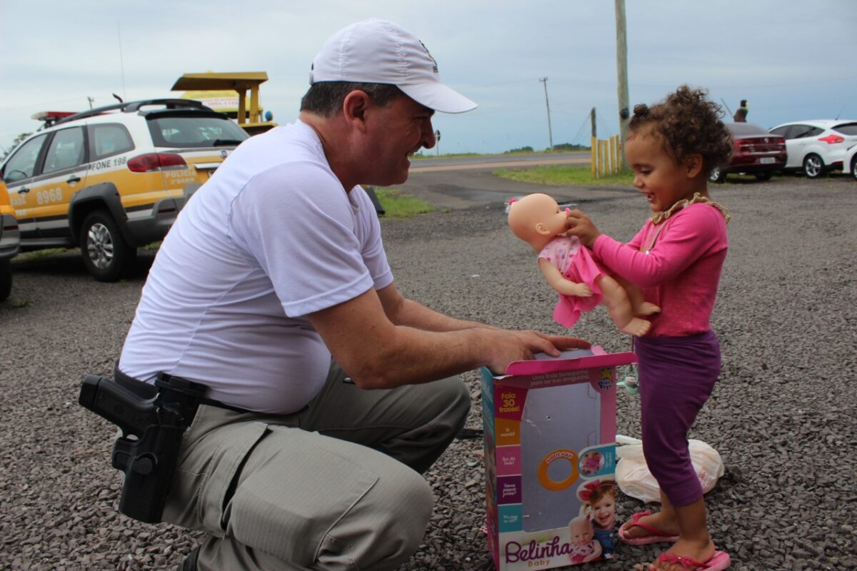 O Estradinha do Comando Rodoviário surpreendeu as crianças quando chegou com a viatura lotada de presentes, neste momento as crianças fizeram uma festa. Alegria compartilhada pela mãe que estava triste por não ter alimentos para comemorar a data. “Eu só tinha em casa dois quilos de arroz e um de feijão e mais nada para comer, graças a Deus e a vocês agora vamos passar bem” disse Natalina.