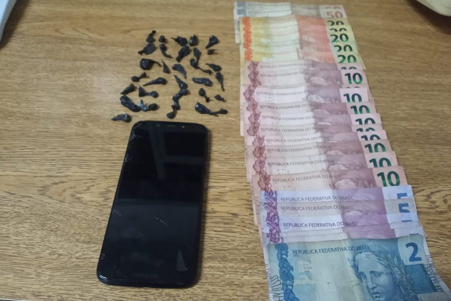 Logo após o suspeito foi abordado acompanhado de sua namorada (24 anos), sendo apreendido com ela R$ 337.