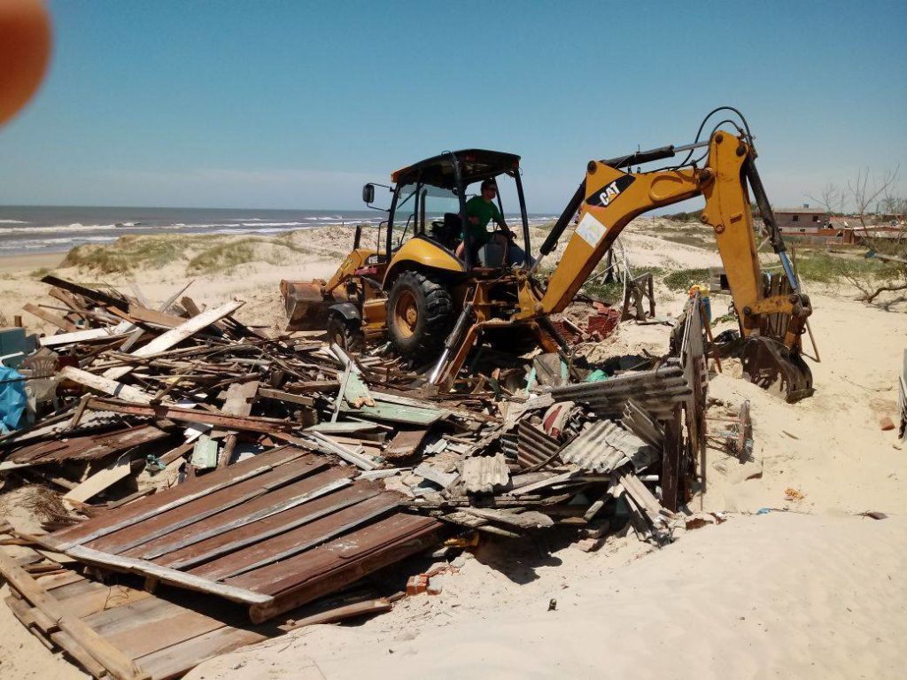 A Justiça Federal determinou a demolição de casas que teriam sido construídas irregularmente, na praia do Magistério, em Balneário Pinhal. Seguindo determinação da Justiça Federal, o município procedeu a demolição de dois imóveis.