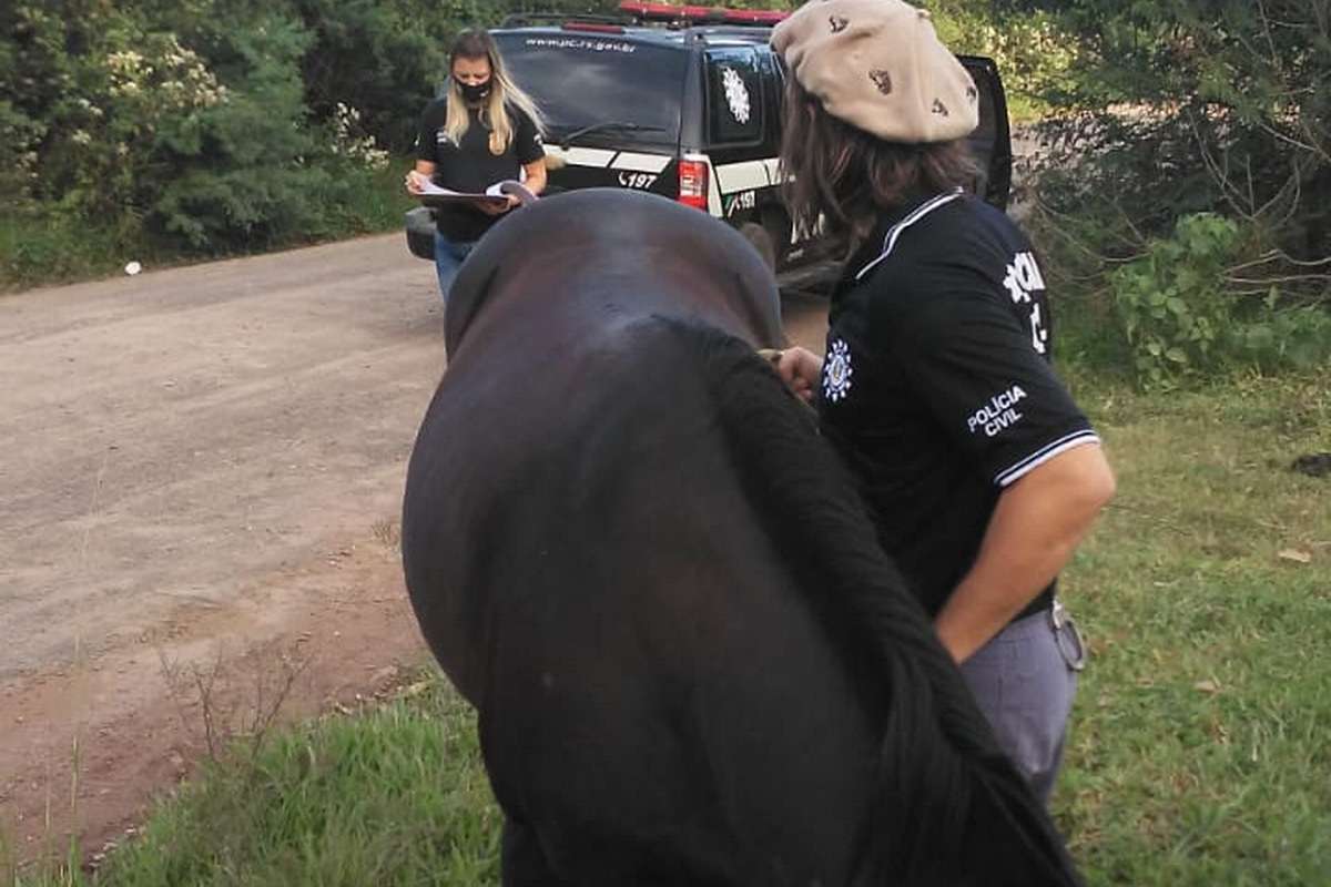 Os agentes da Polícia Civil realizaram, na tarde desta segunda-feira (05/04), a recuperação de um cavalo de raça (crioulo) furtado em Osório, a partir do registro de ocorrência policial e informações obtidas com a comunidade.