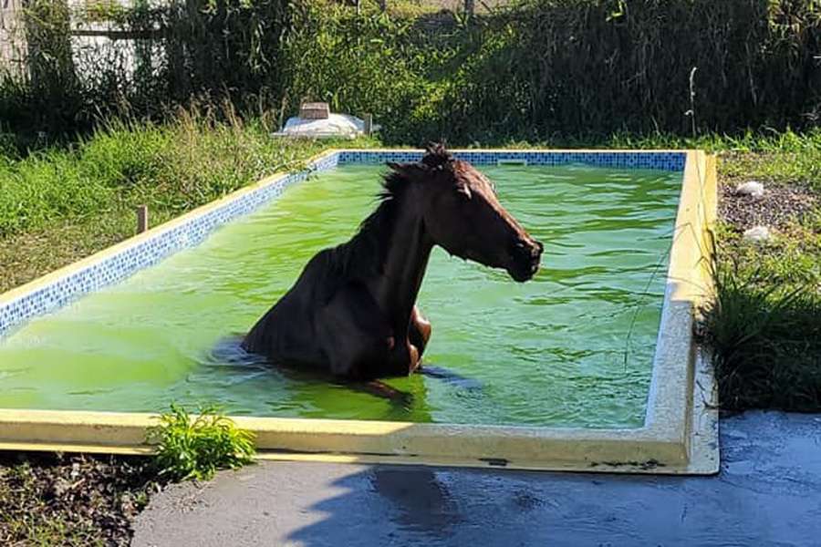 Um cavalo caiu na piscina de uma residência, na manhã desta quinta-feira (08), em Balneário Pinhal.
