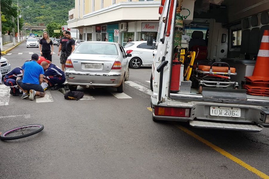 Um ciclista teve ferimentos após uma colisão entre sua bicicleta e um veículo, no final da manhã desta terça-feira (26), no centro de Osório.