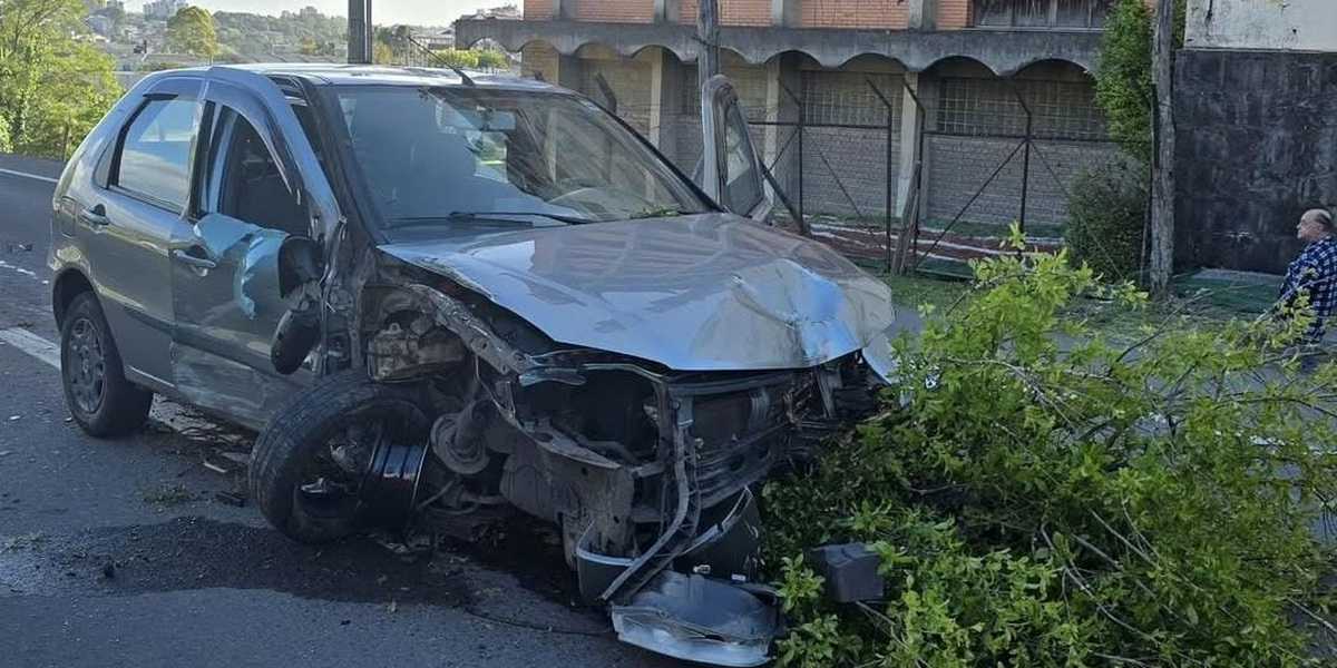 O impacto fez com que o Palio atingisse um ônibus que trafegava na via.