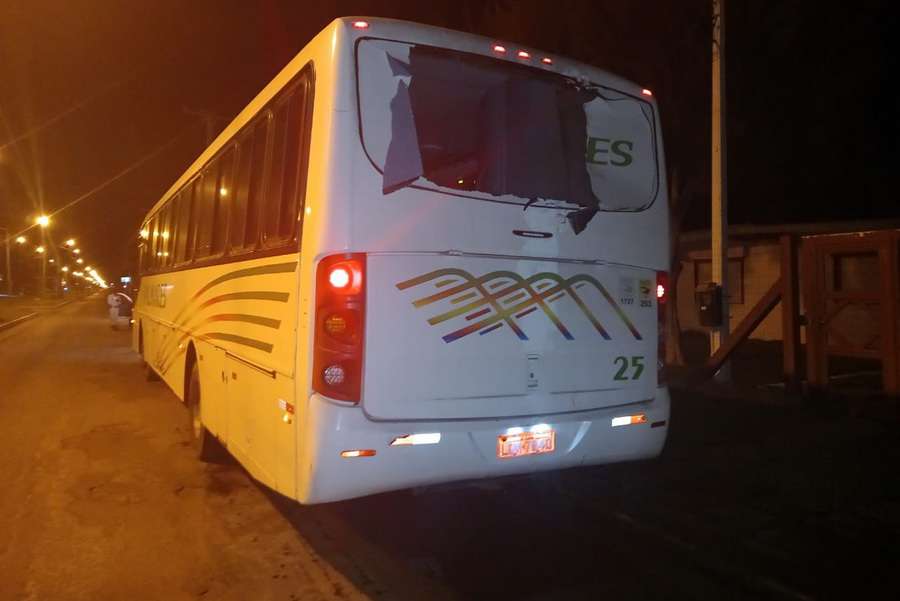 O ônibus apresentava danos na traseira de lateral e foi removido para o depósito.