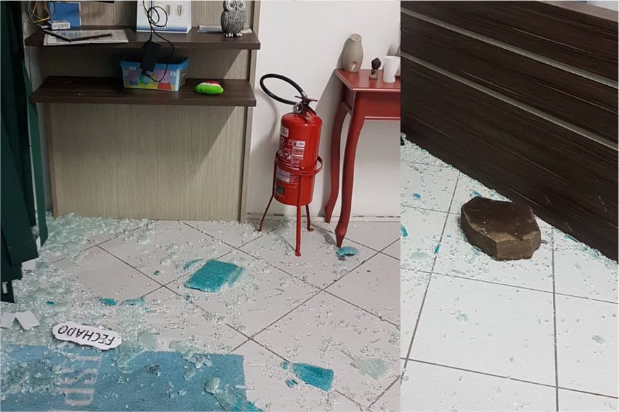O estabelecimento que fica localizado na Rua João Sarmento, teve uma porta de vidro quebrada com uma pedra.