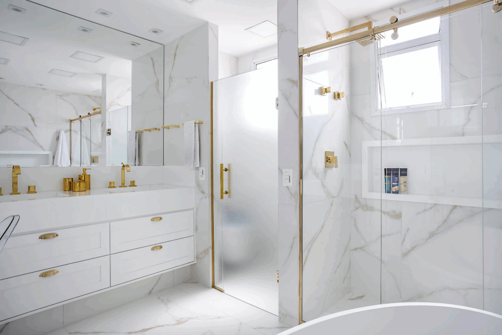 O clássico all white ganha força com o tom e pode aparecer tanto de maneira protagonista quanto em pequenos toques. Quando usado em grande escala, cria efeitos atemporais. Detalhes em dourado, por exemplo, elevam a proposta e reforçam o ar sofisticado, seja em puxadores, luminárias ou acessórios.