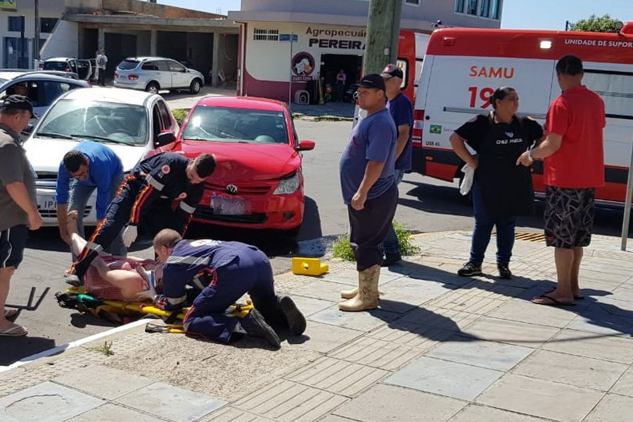 O acidente ocorreu na esquina das ruas Santos Dumont e Ildefonso Simões Lopes, próximo a um posto de combustível.