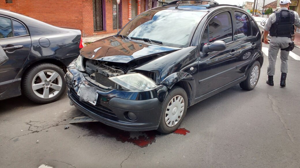 A colisão ocorreu na esquina das ruas Manoel Marques da Rosa e Júlio de Castilhos, no centro da cidade.