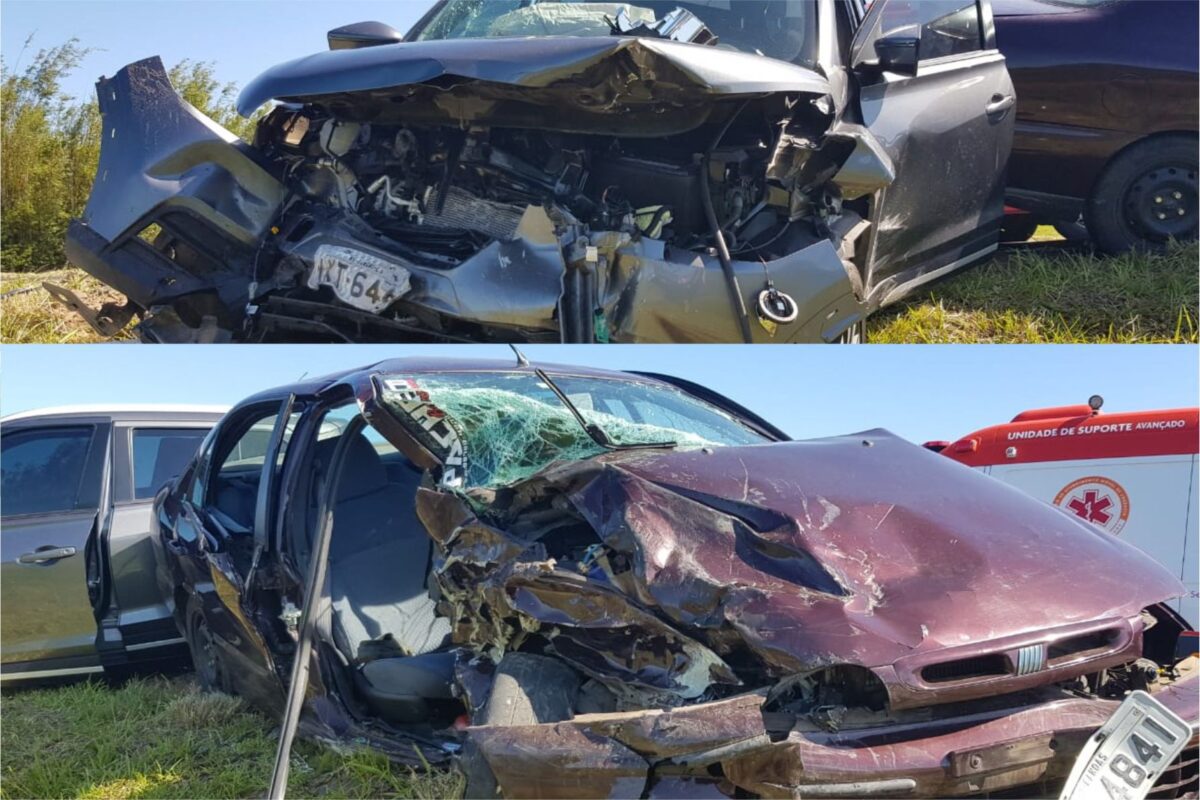 Uma colisão entre dois veículos deixou quatro homens feridos, por volta das 14h40min desta sexta-feira (29), em Osório.