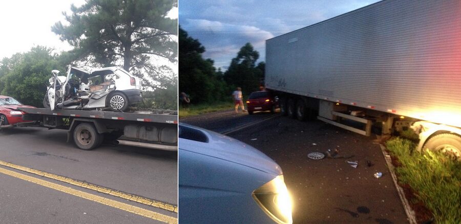 Uma colisão envolveu dois carros e uma carreta, por volta das 4h da madrugada deste domingo (09), na Estrada do Mar.