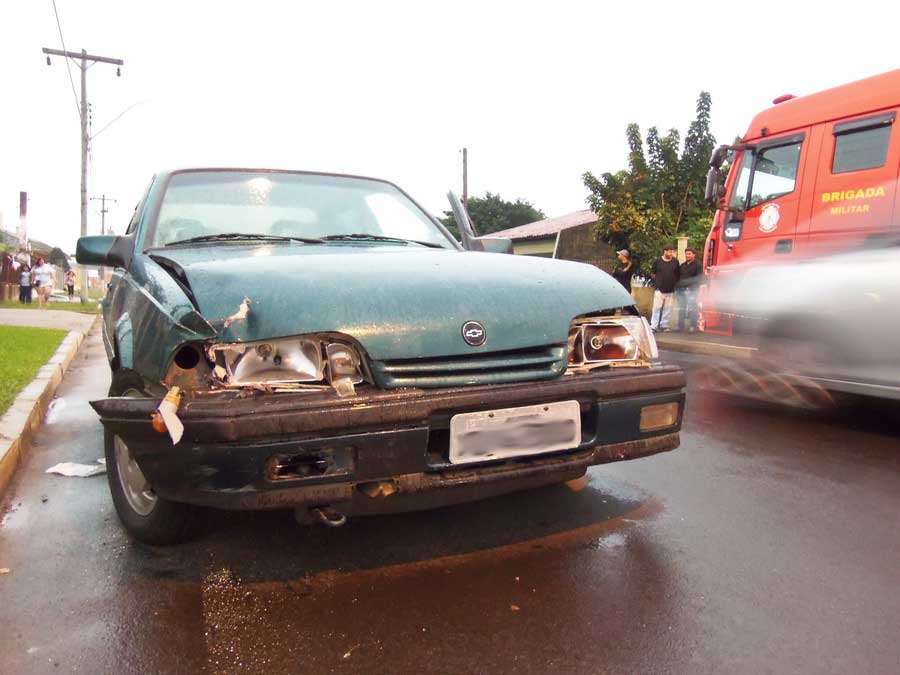 Uma colisão envolveu dois veículos na esquina das ruas Garibaldi e Constituição, no bairro Glória, em Osório.