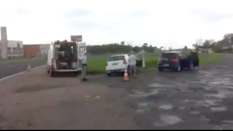 Um acidente de trânsito envolveu dois veículos no trevo que liga Osório a Tramandaí, próximo ao Parque de Rodeios Jorge Dariva, na RS-030, em Osório.