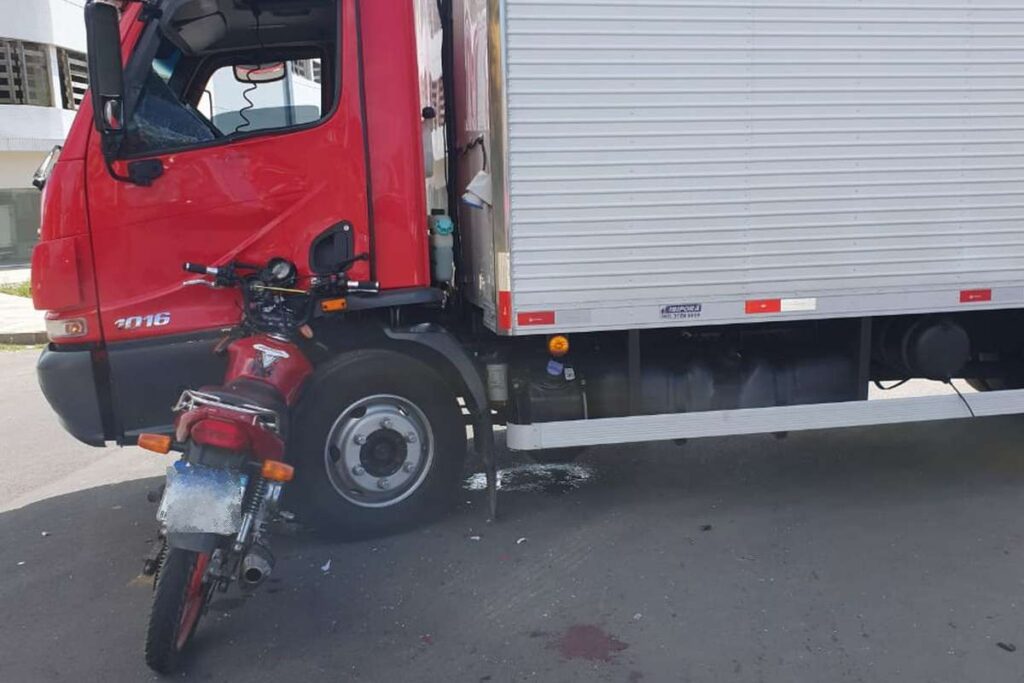 Um acidente de trânsito envolvendo uma motocicleta e um caminhão, deixou uma pessoa ferida, em Imbé.