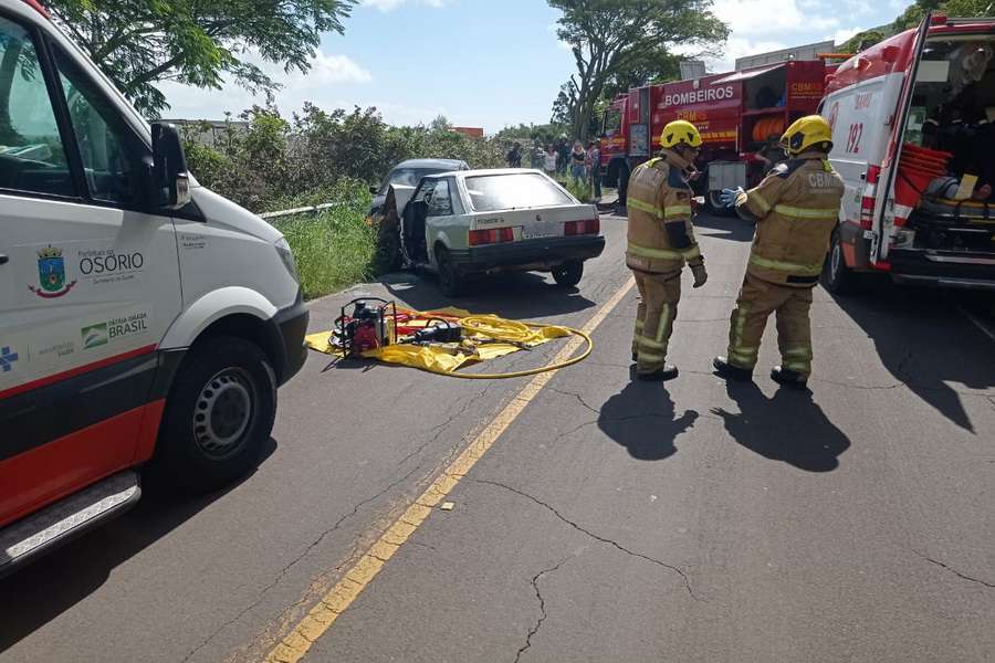 Posteriormente os bombeiros utilizaram equipamento de desencarceramento para liberar as vítimas presas nos veículos.