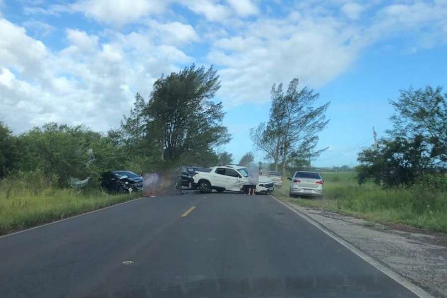 A colisão frontal entre dois veículos bloqueia a ERS-407 nos dois sentidos, próximo ao parque eólico de Xangri-Lá.