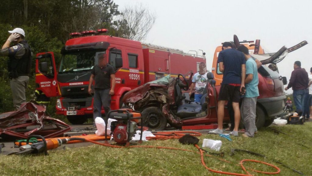 Uma colisão frontal envolveu dois veículos, no km 09 da RS-474, em Santo Antônio da Patrulha.