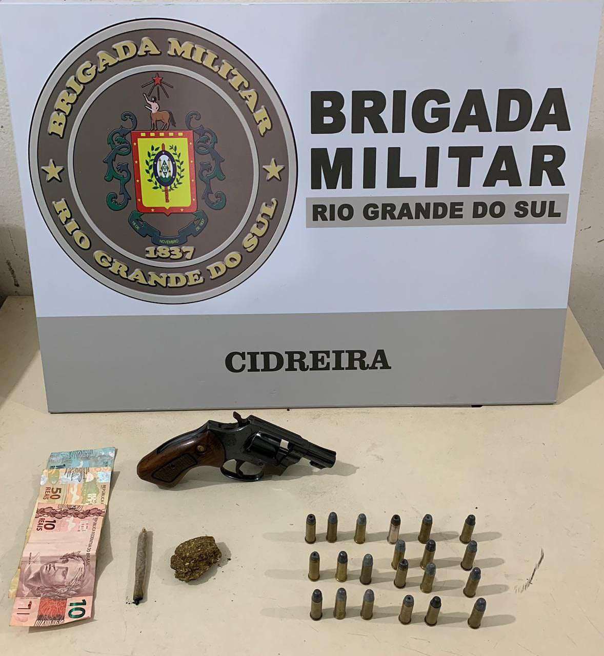 Em abordagem, foi encontrado com o homem de 26 anos, um revólver e diversas munições, além de uma porção de maconha e dinheiro.