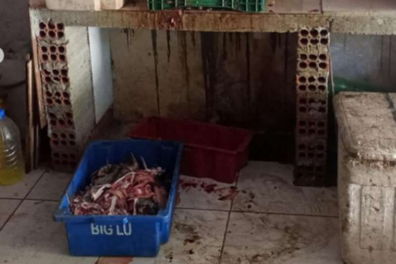 Ao chegar ao local, os Policiais Militares Ambientais flagraram a manipulação de peixes da espécie bagre em um ambiente insalubre.