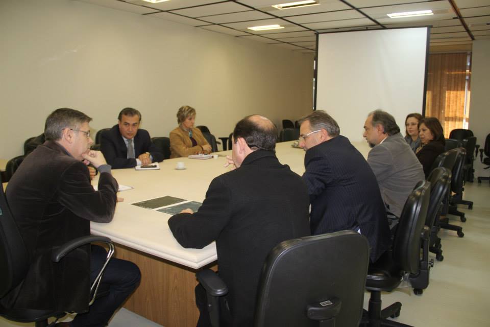 A comitiva de Osório formada pelo prefeito Eduardo Abrahão, o vice-presidente da Câmara, Rossano Teixeira; os vereadores Carlos Eugênio Moeller (Lélly) e Ed Moraes da Silva, e as moradoras do Bairro Serramar, Simone Sessin e Graziela Souza, reuniu-se com o secretário César Faccioli; Coordenador geral de execução de projetos, Aldo Peres e a Major, Simone Kilian Braga.