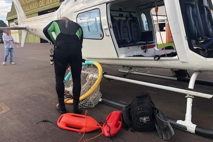 Conforme o Corpo de Bombeiros, houve uma orientação da Marinha do Brasil para que não entrassem por causa das condições do mar, que está mexido e com muitas ondas.