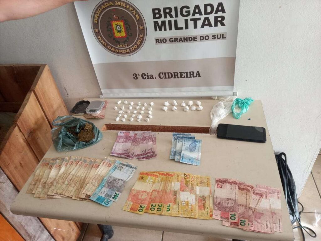 Os PMs localizaram o homem com as características informadas, localizando com ele, dentro de uma mochila, 32 porções de maconha, 9 pedras de crack, 4 porções de cocaína, 3 rolos de plástico filme, duas balanças de precisão e R$38,00.