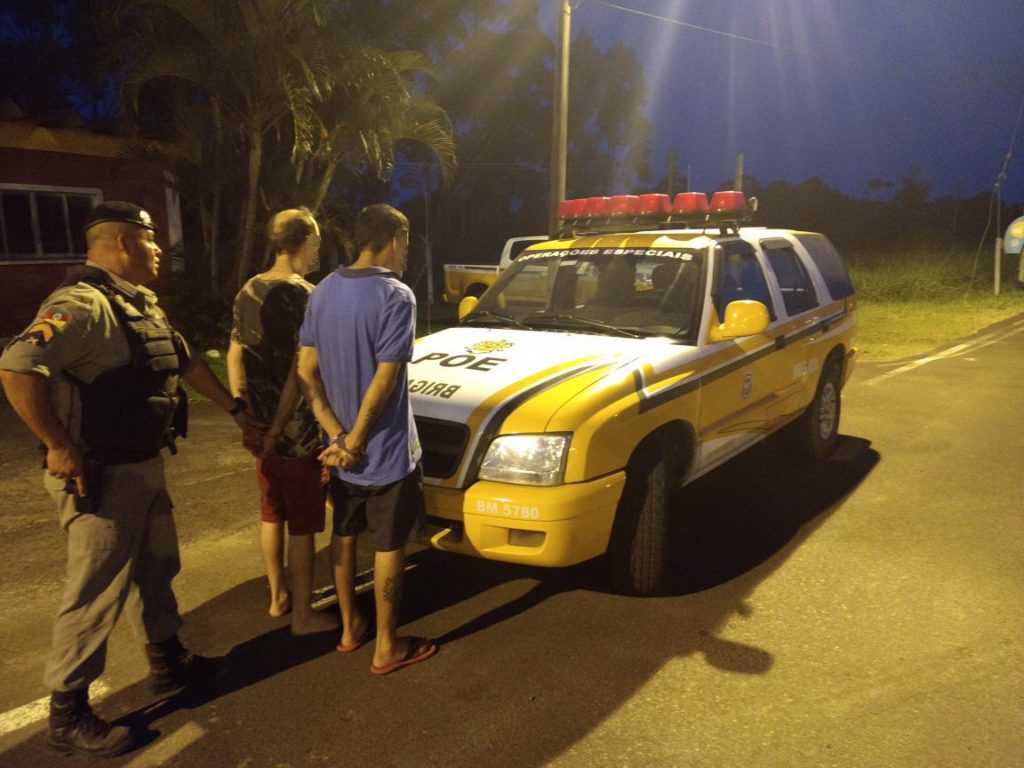 Eles eram foragido da justiça. Uma pistola 9mm com numeração raspada e uma pequena quantidade de maconha foi apreendida.