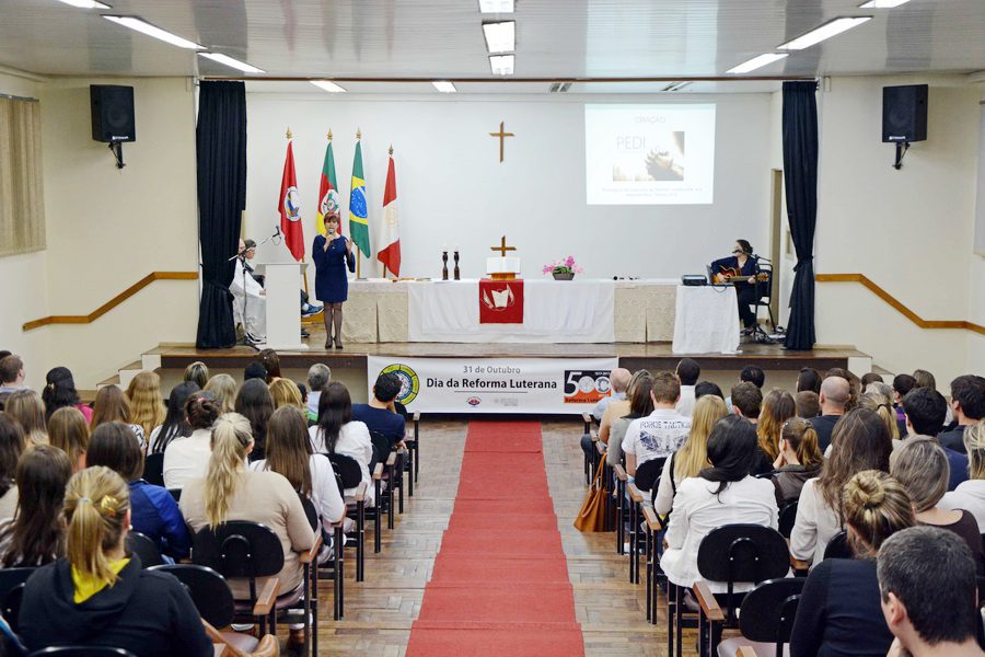 A ULBRA Torres realizou na noite desta quarta-feira (28/10) o culto em celebração aos 498 anos da Reforma Luterana, que é comemorado no dia 31 de outubro. Na ocasião, o auditório da Universidade esteve lotado de acadêmicos, professores e funcionários que tiveram a oportunidade de ouvir sobre a reforma protestante, além de terem um momento de devoção e louvor.