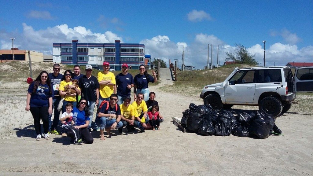 Foram coletados aproximadamente 20 sacos de lixo nas proximidades da plataforma de pesca. O evento foi organizado pelos professores Vinicius Porto de Avila, Ludinara Scheffel e Thais Castro.