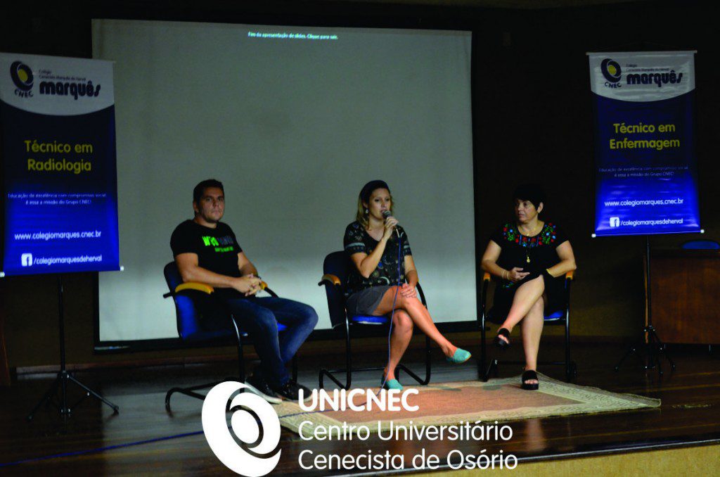 Após, ocorreu um bate-papo com o técnico em Radiologia, Pablo Assis Almeida Fraga e com a técnica em Enfermagem, Ulla Tomaz, mediado pela profª Júlia Darol Dall Alba. Os profissionais falaram sobre mercado de trabalho, vida acadêmica e outras curiosidades referente as profissões.