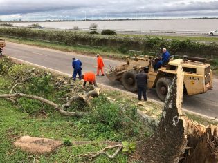 Com o intervalo da chuva, equipes da 16ª Superintendência Regional do Daer, de Osório, iniciaram uma série de ações de urgência na ERS-030 (km 69), em Santo Antônio da Patrulha.