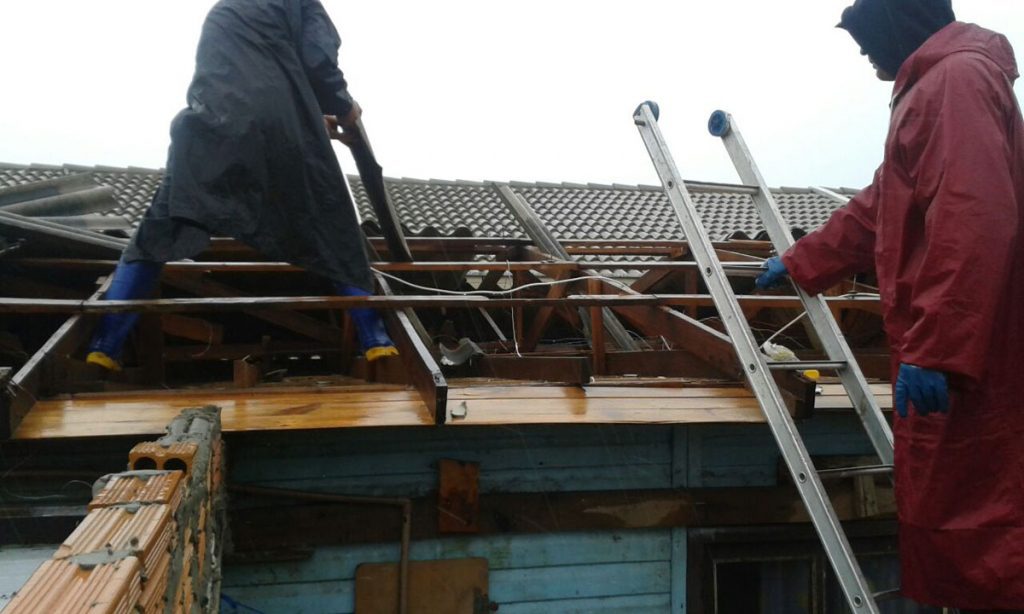 Conforme o secretário municipal de Segurança Pública e Trânsito e coordenador da Defesa Civil, Marco Antonio Silva, o caso ocorreu no Balneário Nordeste, onde uma casa localizada na Rua Salvador do Sul precisou de auxílio com lonas.