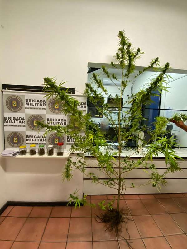 Ainda durante as diligências, os policias apreenderam um pé de maconha de mais de dois metros de altura.