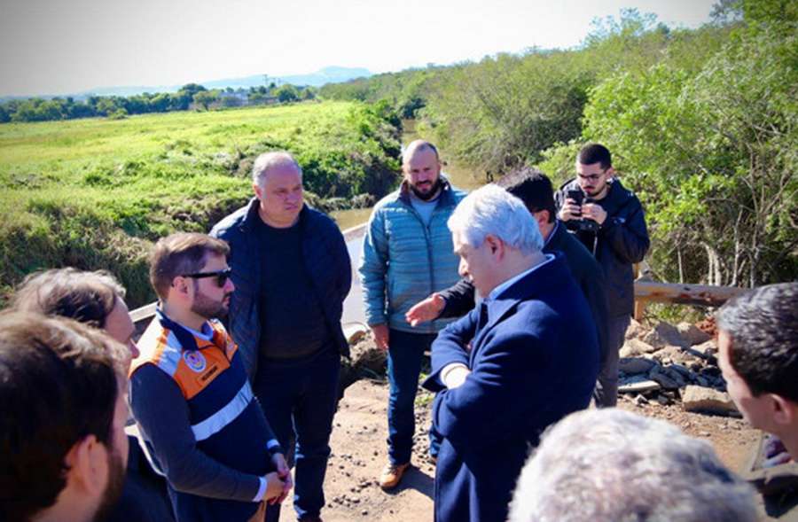 No final da manhã, o grupo percorreu alguns locais, vistoriando os estragos. Na RS 474, a prioridade é a recuperação da ponte que desabou, interditando a via.