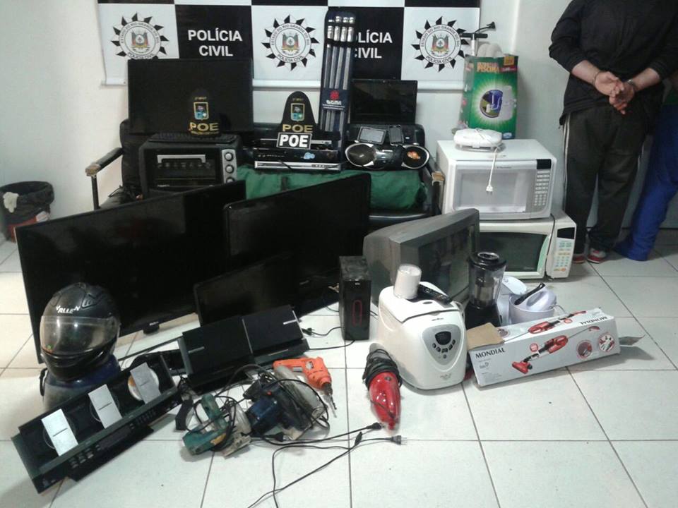 Dois suspeitos que estavam nos carros confirmaram os crimes e confessaram que outros objetos furtados estavam em uma residência próxima dali. Os policiais se dirigiram para lá e encontraram diversos televisores, fornos micro-ondas, vários eletrodomésticos e ferramentas.
