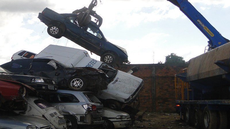 A primeira etapa da reciclagem, que é feita no próprio depósito com equipamento desenvolvido especialmente para esse fim, é a descontaminação das sucatas, quando são retirados resíduos poluentes, como óleo de motor, fluido de freio, baterias e extintores. Depois, os veículos são compactados para facilitar o transporte, e enviados à siderúrgica, onde são triturados para fundição.