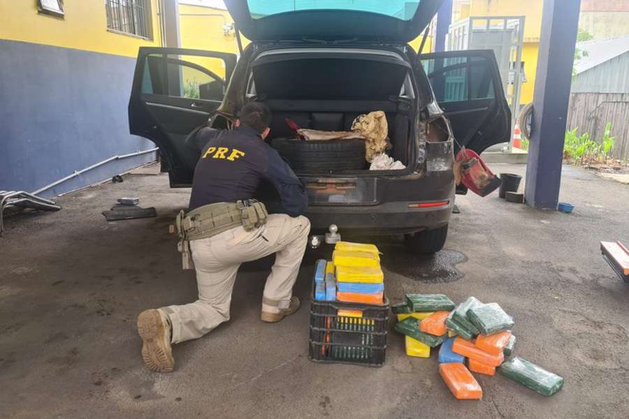Ao inspecionarem o veículo, encontraram a droga escondida dentro do painel e no porta malas do carro.