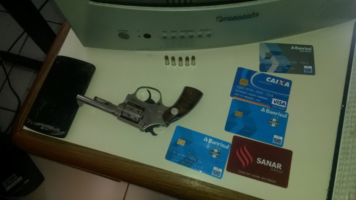 A BM foi acionada e prendeu os bandidos em uma motocicleta. Com eles foi localizada uma arma calibre 22 municiada e os objetos roubados da mulher.