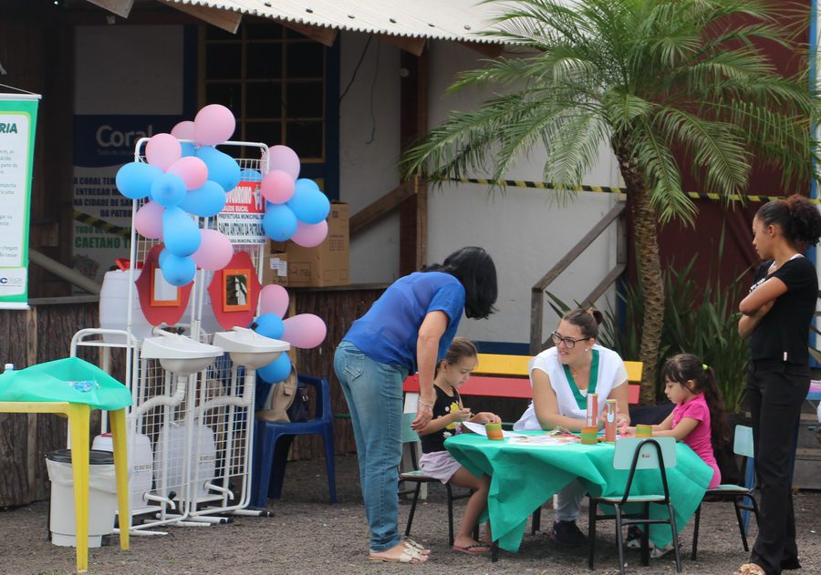 A técnica em Saúde Bucal Ana Paula Link e as auxiliares Jaqueline Santos e Isabel Cristina Vargas estiveram orientando o modo correto de realizar a escovação e higienização para cerca de 2 mil crianças que passaram pelo parque. Após o processo de instrução de higiene bucal as crianças puderam usufruir das mesas com jogos e desenhos para colorir, ganharam também a escova dentária que utilizaram e um kit educativo sobre higiene bucal.
