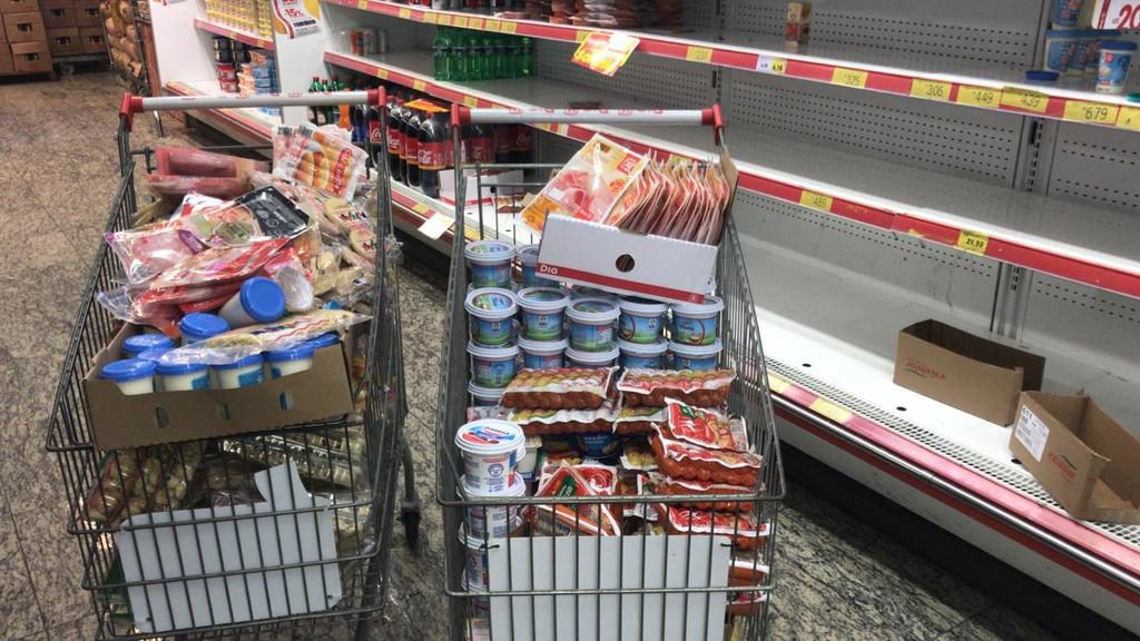 Durante as inspeções, foram encontrados alimentos impróprios ao consumo, com prazo de validade vencido, armazenados de forma irregular, embutidos mofados e fora da temperatura adequada, insetos dentro de embalagens de massas, além de problemas de infraestrutura e falta de higienização.