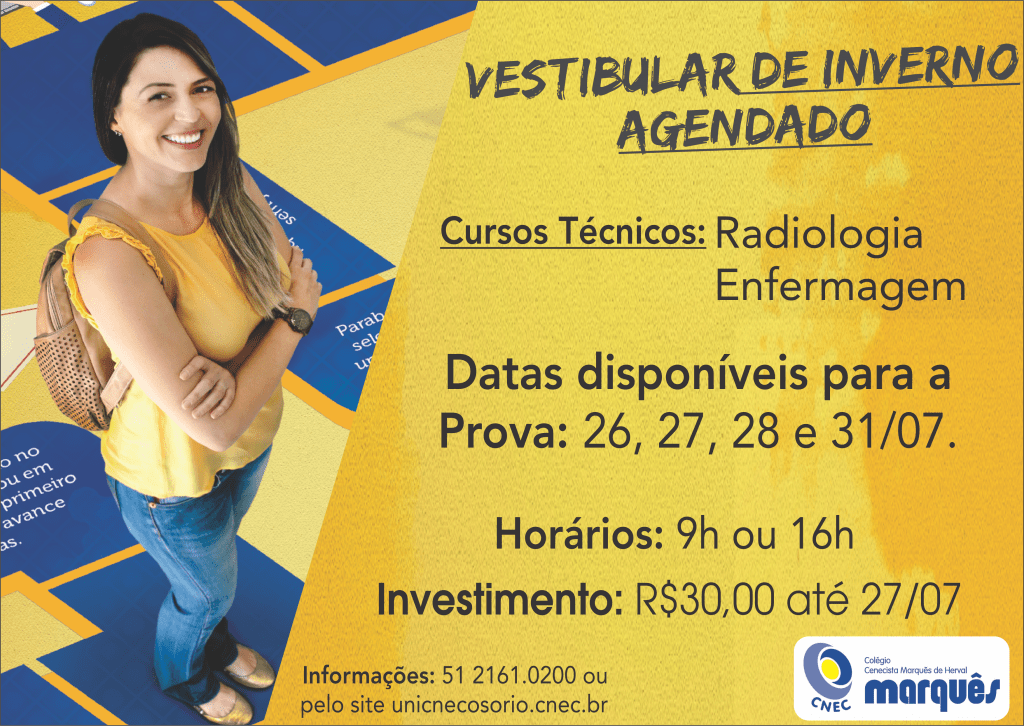 Estão abertas as inscrições para o Vestibular de Inverno Agendado do Colégio Cenecista Marquês de Herval.