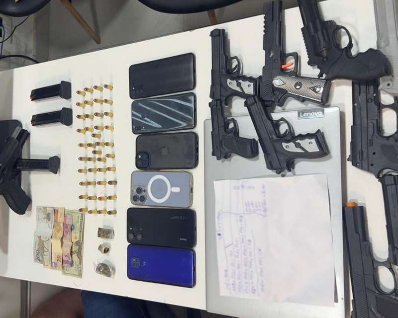 Os agentes apreenderam dois revólveres, calibres .38 e .32, munições e grande quantidade de drogas ilegais, incluindo maconha tipo Skunk, MDMA e ecstasy, além de diversos utensílios utilizados no tráfico.