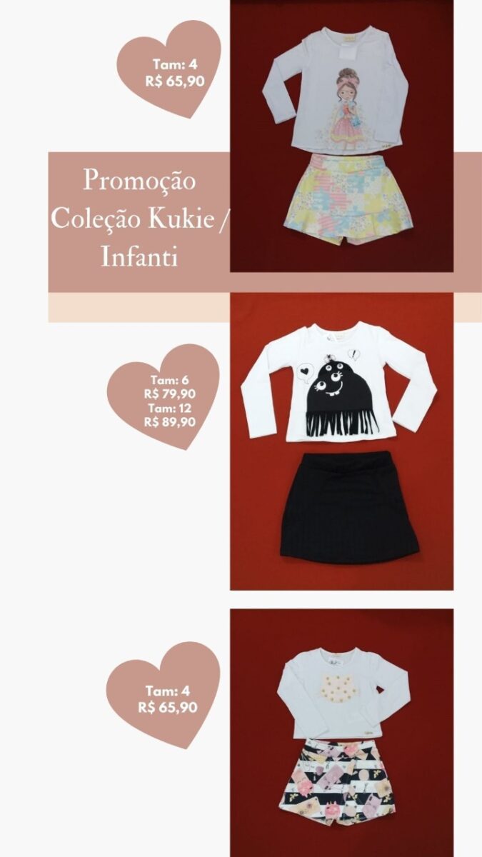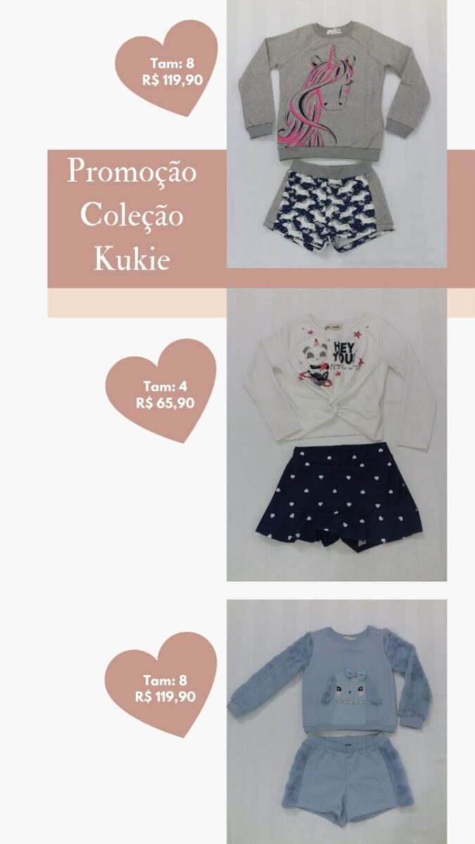 São roupas de diversos tamanhos para os pequenos: 1, 2 e 3, do 4 ao 8, do 12 ao 18 e P, M e G, entre outros.
