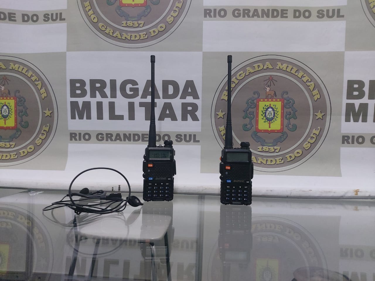 Foram identificados um homem de 25 anos e outro de 36, com antecedentes por ameaça e posse de entorpecentes que estavam com os rádios da marca Baofeng, na frequência da Brigada Militar.