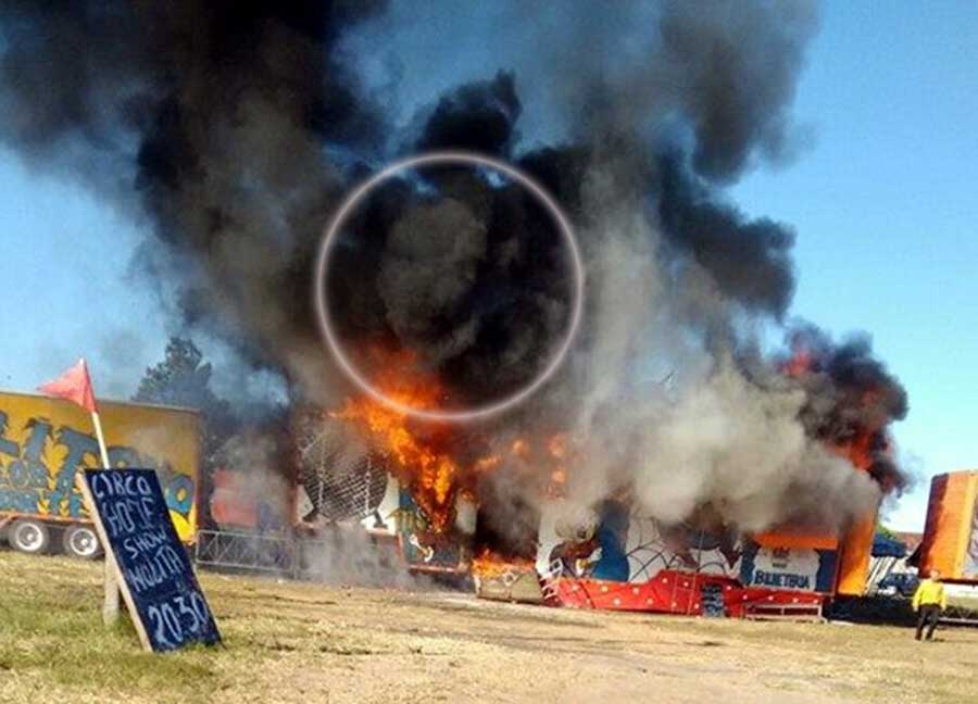Uma imagem do início do fogo que atingiu um caminhão do Circo Metropolitano na manhã desse sábado, em Osório, vem intrigando internautas nas redes sociais.