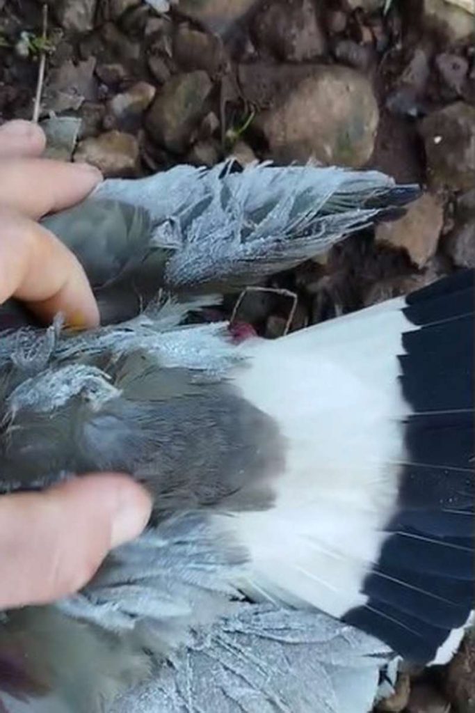 Em um vídeo que circula nas redes, um quero-quero aparece com as asas completamente congeladas pela geada em uma área rural, reflexo das temperaturas extremamente baixas que atingem o estado nesta semana.