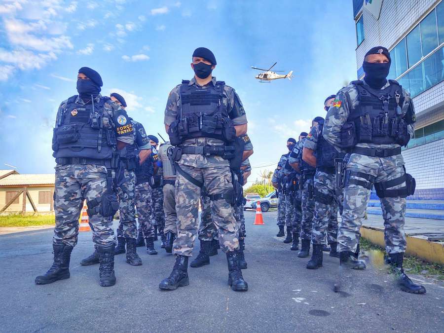 Foram empregados na operação 33 policiais militares da Agência Regional de Inteligência do CRPO Litoral; das equipes de Inteligência, Força Tática e Canil 8º BPM; e da Força Tática do 2º BPAT e foram utilizadas 10 viaturas.