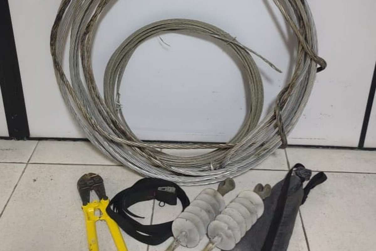 Com ele foi focalizada uma quantidade de cabos e próximo ao local, mais cabos e instrumentos utilizados no furto, sendo apreendidos 50 metros de cabos de energia, um tesourão, um cinto e dois isoladores.